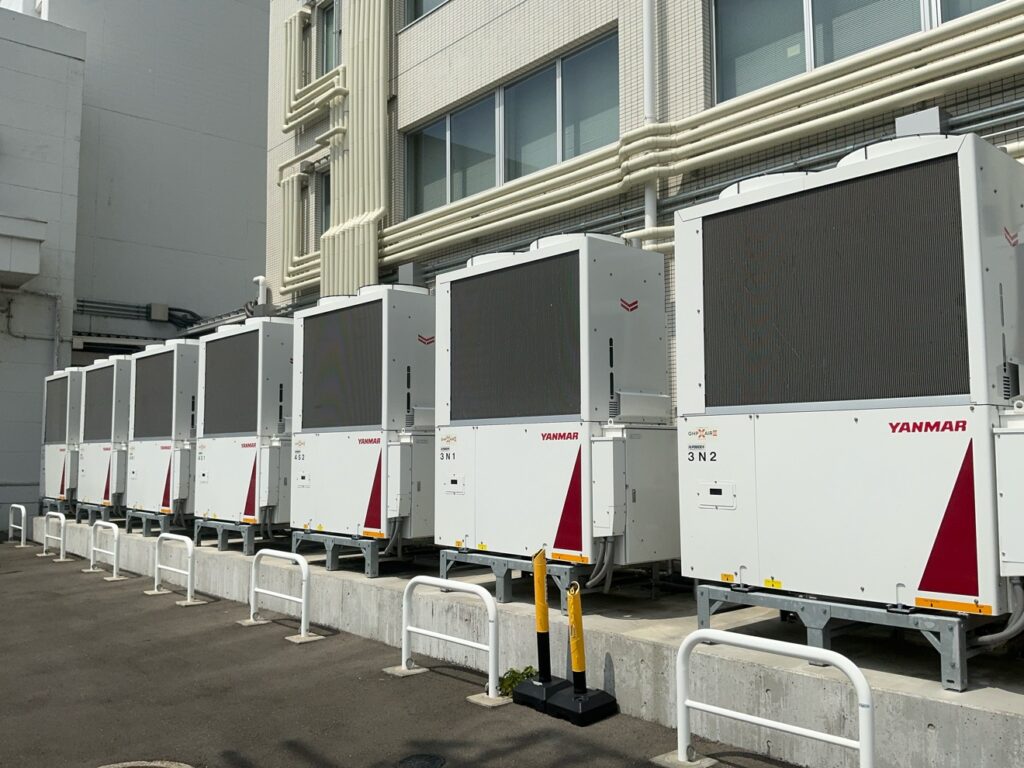 藤枝市役所では、庁舎西館の空調設備の更新にあたり、停電対応型GHP16台を導入し、2023年12月より運用開始しています。