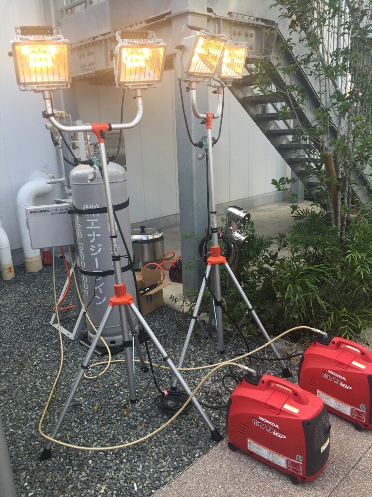 藤枝駅前再開発事業として2018年に竣工した「フジエダミキネ」は、JR藤枝駅に隣接する立地を生かして、帰宅困難者の一時避難所としての機能を有しております。当社では、一次避難所で活用いただくため、LPガス発電機・投光器・ガス炊飯器等を寄贈し、地域の防災力向上に役立てていただいております。