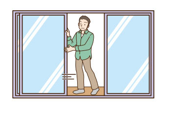 窓や戸を大きく開けましょう。