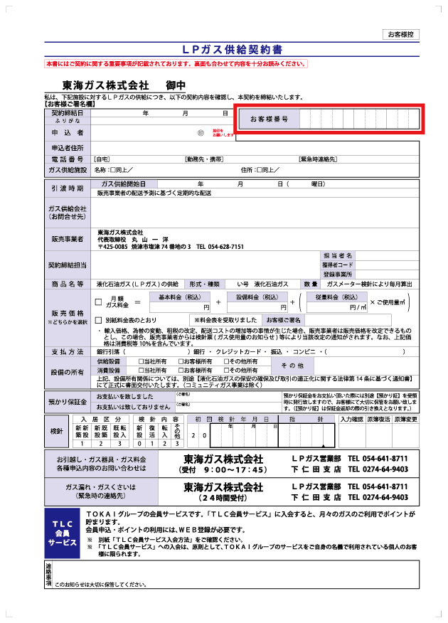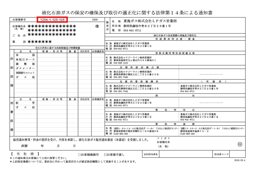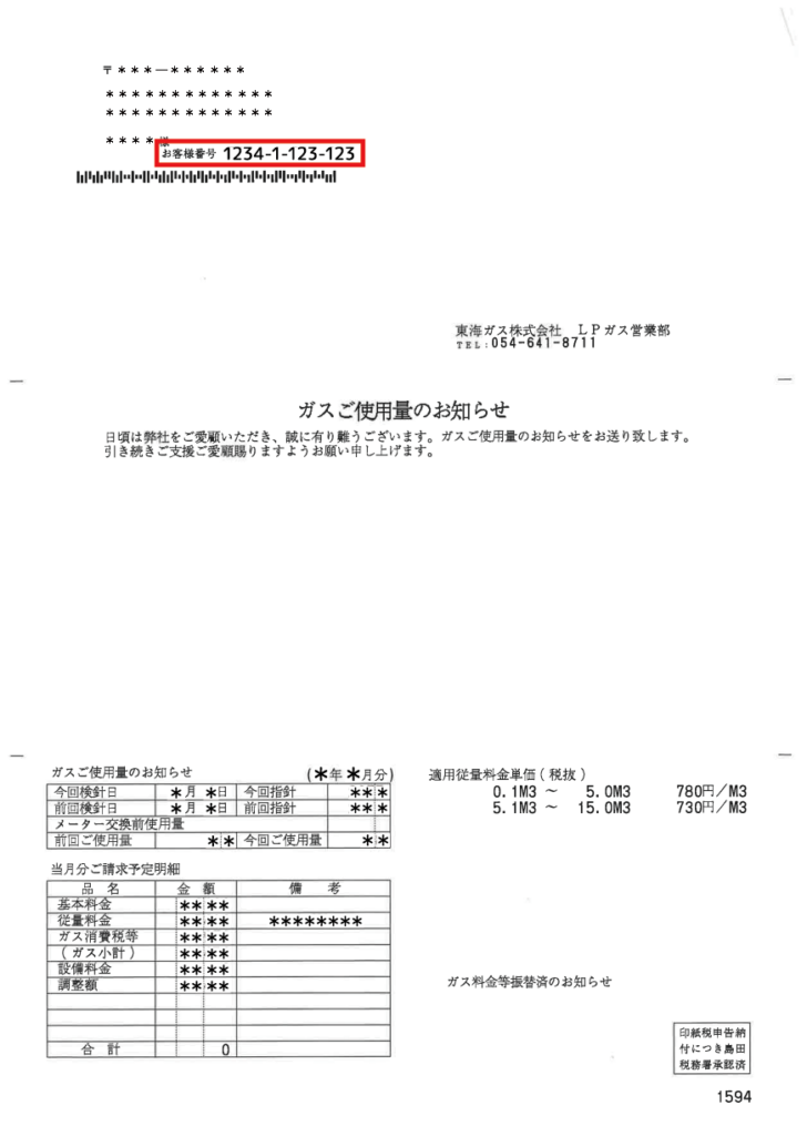 お手数をおかけしますが、東海ガスLPガス窓口(054-641-8711)にお問い合わせください