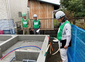 施工現場の定期パトロール。理事会員により現場を巡回します。良い点は共有、改善点は是正し、より安全な施工につなげます。