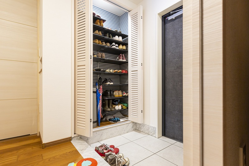LDKリフォーム、無垢フロア、内装、玄関収納