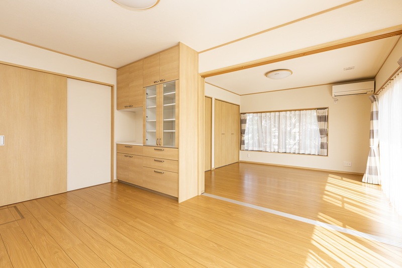 離れを増築して夫婦二人の住む終の棲家へとリノベーションしました。広々としたLDKはリビングとダイニングに間仕切ることも可能。LDK・寝室・洗面・トイレ、それぞれへの動線も考慮された間取りです。外観も、既存部分の外観を損ねないよう配慮しました。