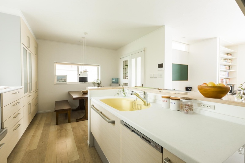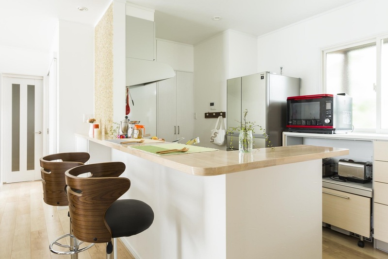 別々だったリビングとDKをひとつなぎにして、広々LDK空間に大変身!念願の対面型キッチンを中心にリビングダイニングが見渡せる配置に。パントリー収納や、勉強カウンターも新たに設けました。タイル好きの奥様のご要望に応え、アクセント壁やニッチを造作しました。