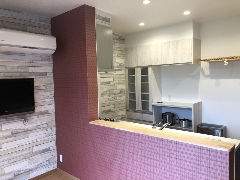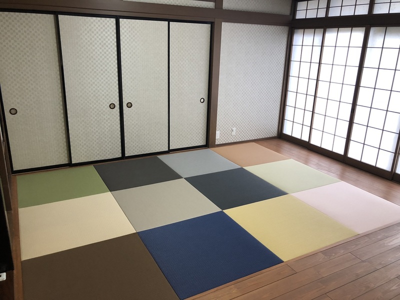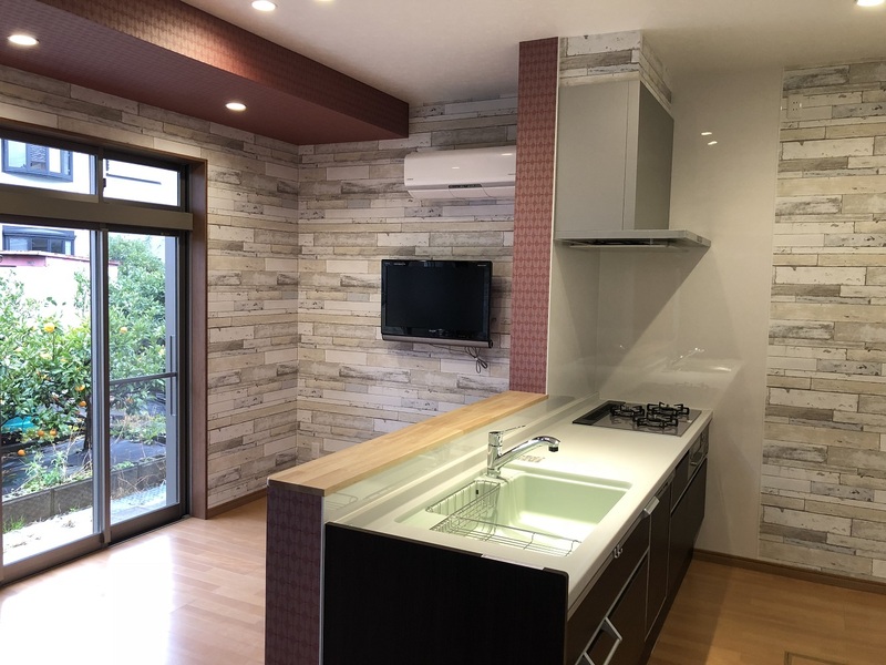 離れから母屋へ移るにあたり、新たな水回り設備に取り替えるとともに、使い勝手の良い間取りに大幅リフォームしました。和室はこだわりの縁なしカラー畳を採用し、無垢の床と絶妙なバランスに仕上がりました。部屋ごとにテーマを変えた壁紙を選び、内装にもこだわりました。
