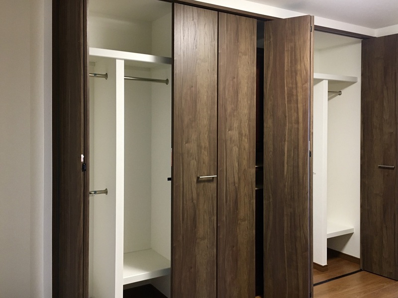 リビングの壁一面にテレビボードも兼ねた壁面収納を取付ました。リビングに面した和室も洋室にして、ご夫婦のクローゼットを造作。収納が増えて快適な空間になりました。