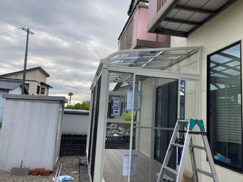 ご夫婦共働きの為、急な天候不良があると洗濯物が心配でした。また、サンルームを設置することで新たな室内空間が生まれる為、ご自分たちはもちろんペットのワンちゃん達も日向ぼっこで気持ち良く過ごせます。