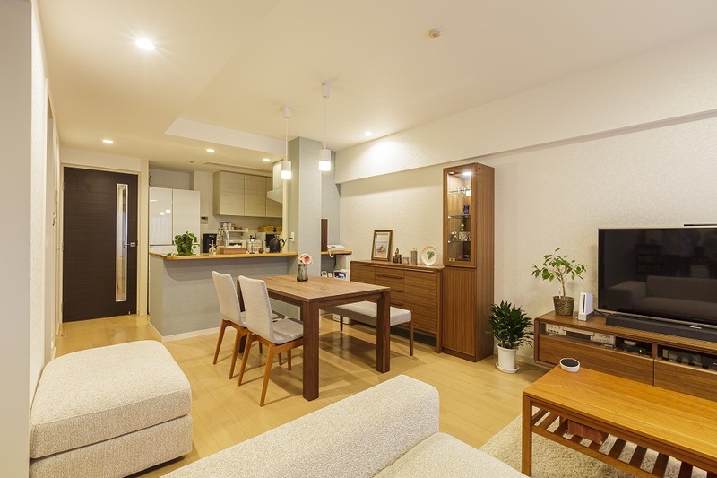 引っ越しを機にマンションの内装リフォームを行いました。和紙畳を用いた和モダンな和室や、エコカラットを贅沢に使用した廊下、アクセントクロスが印象的なリビングなど、ワングレードアップした空間になりました。