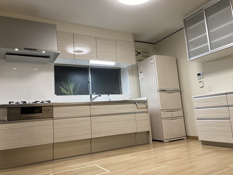 キッチン本体が古くなってきた事や床のたわみが気になってリフォームを検討。床は断熱材を入れて張替えを行い、設備はキッチンとカップボードを交換しました。また、掃き出しの窓を小さくして、新たな勝手口を取り付けました。