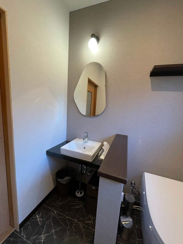 簡易的な脱衣所しかなかった洗面所と浴室を、一部増築して、広くて家族のプライバシーが保てる空間にリフォームしました。トイレは小便器をやめて、手洗い付きの和モダンな印象に仕上がりになりました。